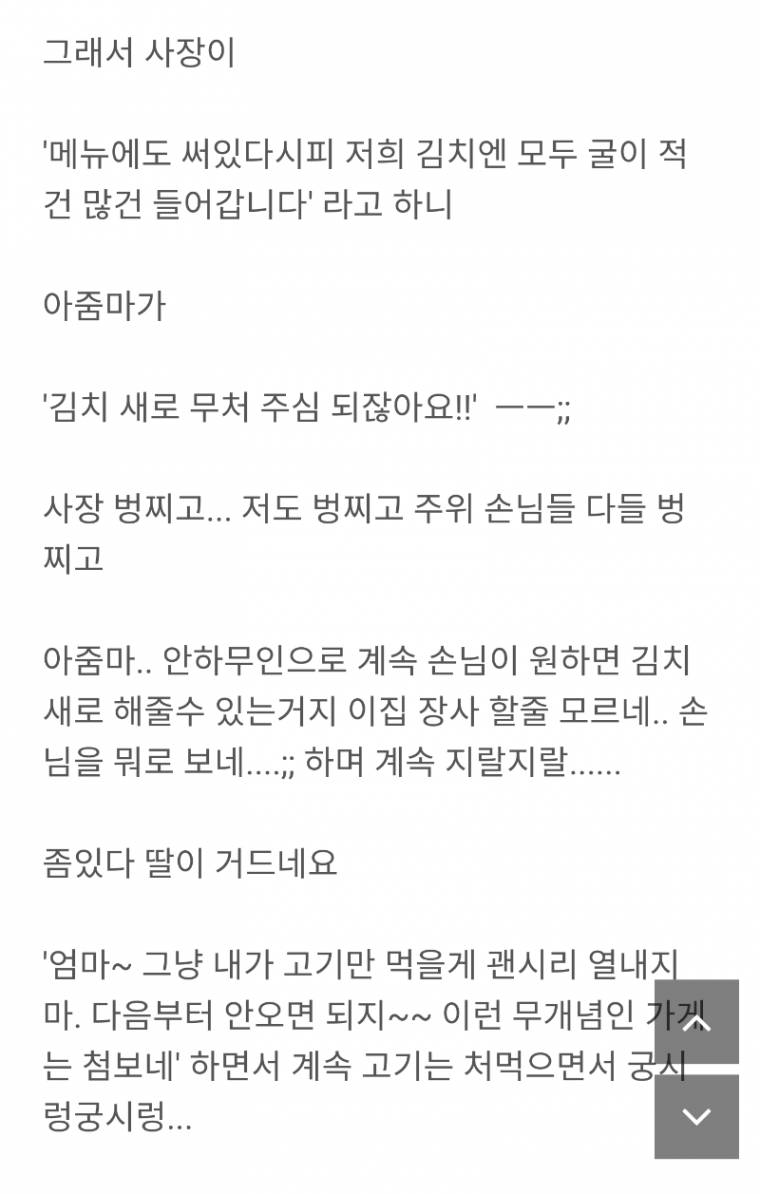 모녀는 주문하기 전도 아니고 이미 먹던 김치에 굴을 빼달라는 황당한 요구를 한 것이다.