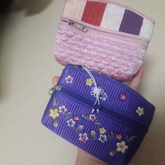 할머니가 건넨 손지갑은 고운 빛깔의 알록달록한 손지갑으로 귀여운 나비 모양의 자수도 달려있었다.