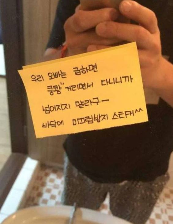 “우리 오빠는 급하면 쿵쾅 거리면서 다니니까 넘어지지 말라구 바닥에 미끄럼방지 스티커^^”