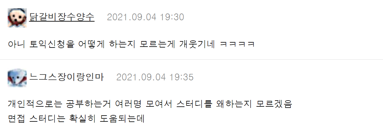 이어서 글쓴이는 “그런데 스터디 모임 회원들이 어떠한 스펙도 없고 토익 시험은 어떻게 신청하는지도 모르고 있었습니다.”라고 말을 덧붙였다.