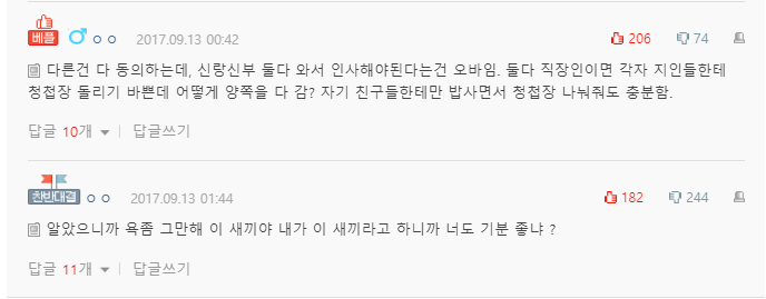 이를 접한 누리꾼들은”이 글을 기분이 나쁘면 결혼하면 안되는 사람임” “청첩장은 기본이 서면 제출 ㅋㅋㅋㅋㅋ” “다 알겠는데 왤케 화났냐.. 그리고 8번은 어디갔는데?” 등의 반응을 보였다.