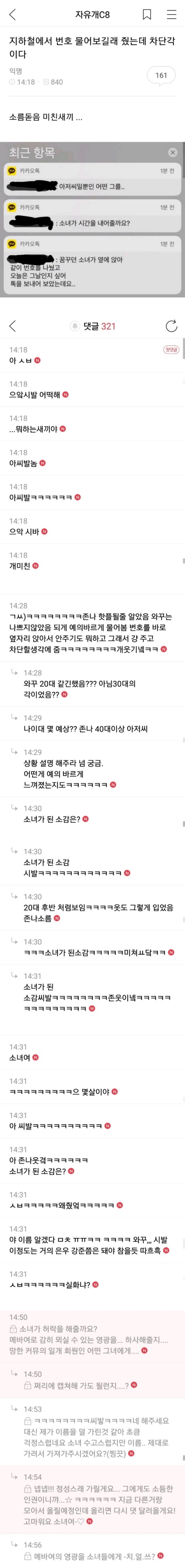 한 온라인 커뮤니티에 올라온 ‘지하철에서 보면 절대 안되는 짤 모음’이라는 제목의 글이 화제다.