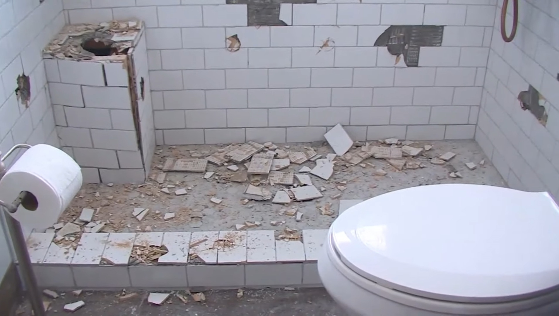하지만 의뢰한 사람으로부터 돈을 받지 못한 갈등으로 그는 분노가 폭발해 망치를 들고 자기가 만든 화장실을 박살냈다.