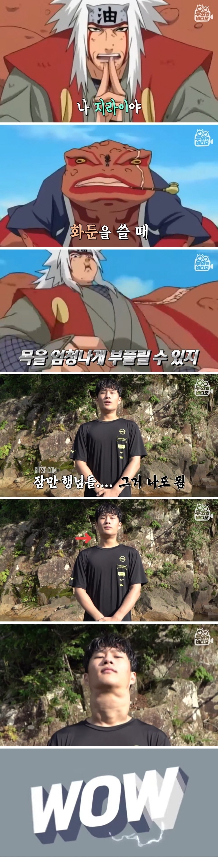 유튜브 우와한 비디오에 업로드된 동영상에서는 목을 부풀린 남성에 관한 내용을 다뤘다.