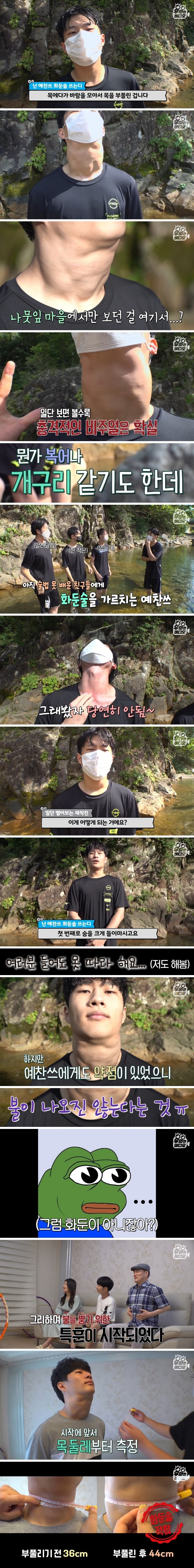 최근 온라인 커뮤니티에 올라온 “목을 자유자재로 개구리처럼 부풀리는 청년”이라는 제목의 게시글이 화제다.