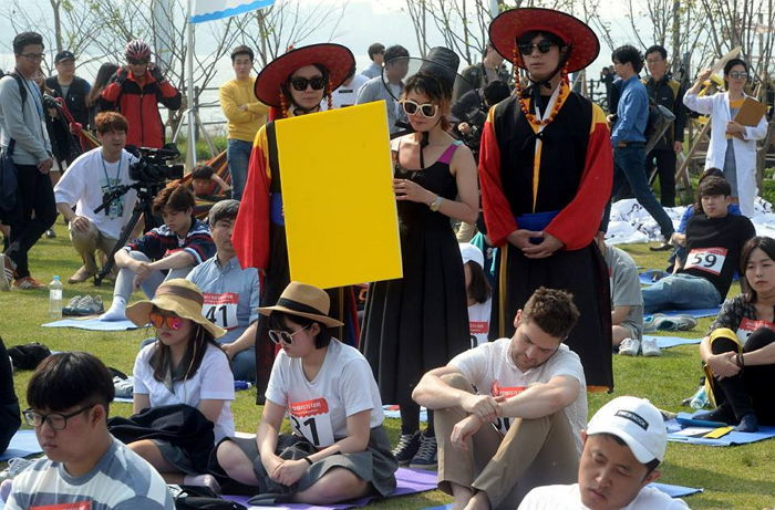 참가자들은 한강에 둘러 앉아 아무 것도 하지 않는 ‘멍 때리기’ 상태를 유지한다.