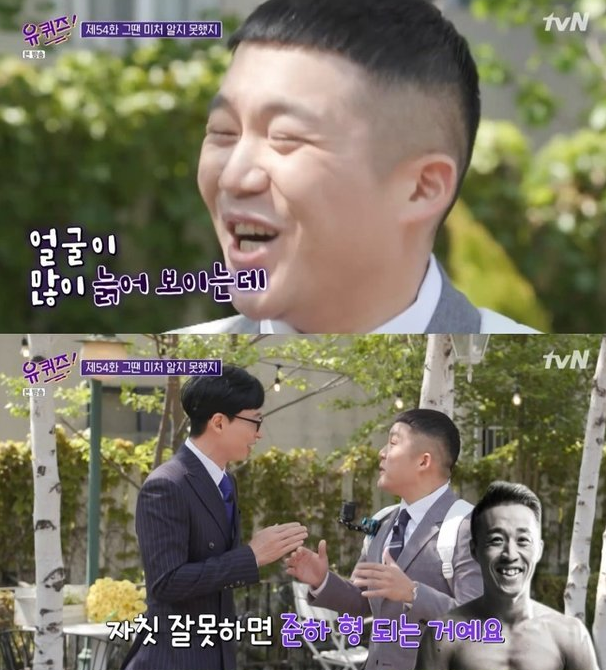 오프닝을 하던 유재석은 “저의 착각이냐. 얼굴이 많이 늙어 보인다”라며 조세호에게 다이어트 후폭풍에 대해 이야기를 했고, 이어 “여기서 자칫 잘못하면 준하형 되는 거다”라며 일침했다.