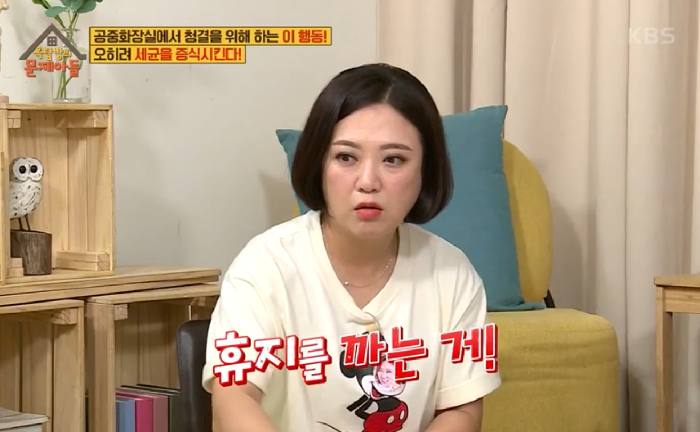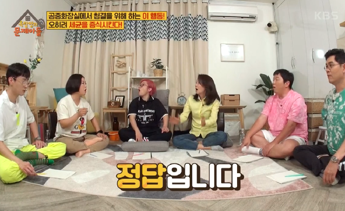 지난 25일 방영된 KBS 2TV ‘옥탑방의 문제아들’의 출연진에게는 ‘공중화장실에서 청결을 위해 하는 이 행동! 오히려 세균을 증식시킨다!’는 질문이 던져졌다.