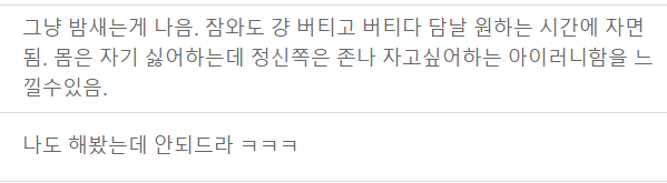 실제로 해당 이론을 실험해본 A 씨는 “이 방법으로 중간에 깨지 않고, 숙면을 취할 수 있었다.”라고 당시 상황을 전했다.