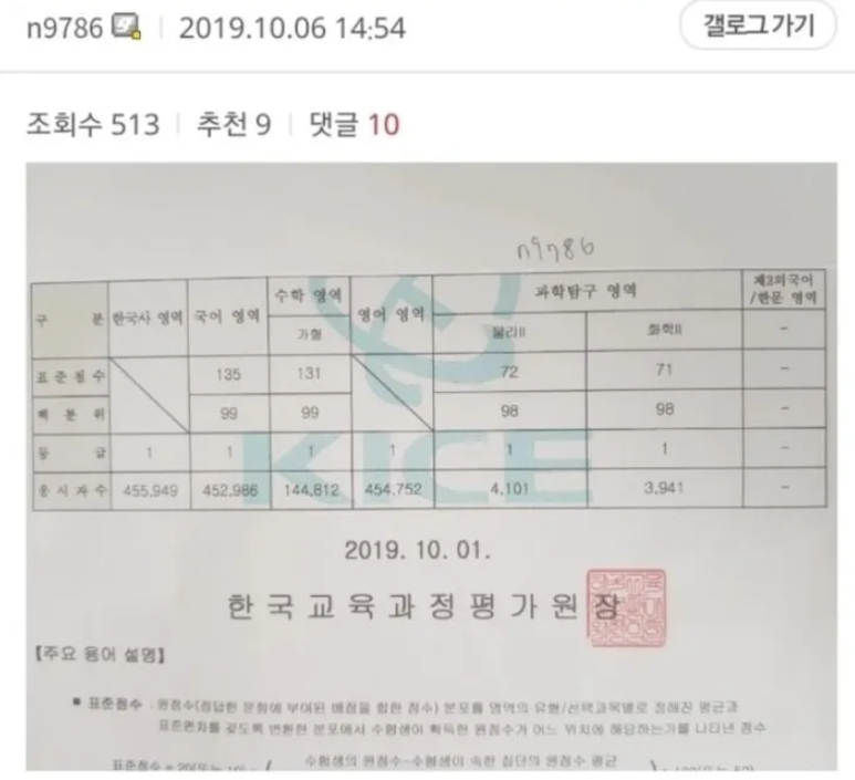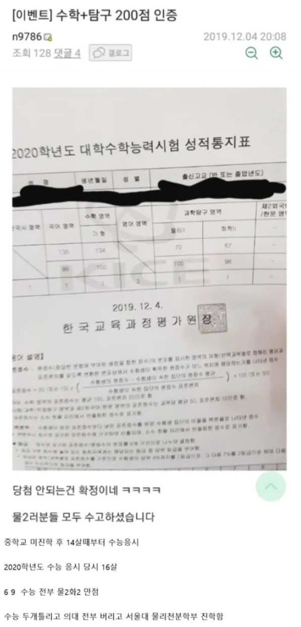 2020학년도 수능 응시 당시 글쓴이는 16살이었고, 높은 성적을 받은 글쓴이는 서울대 물리 천문학부에 진학한 것으로 알려져 있다.