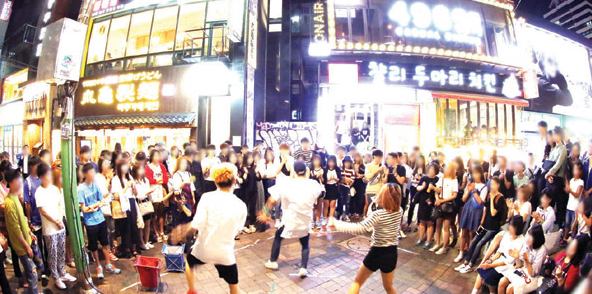 홍대거리는 홍익대학교, 홍대입구역, 상수역 일대에 위치한 대형 상권이다.