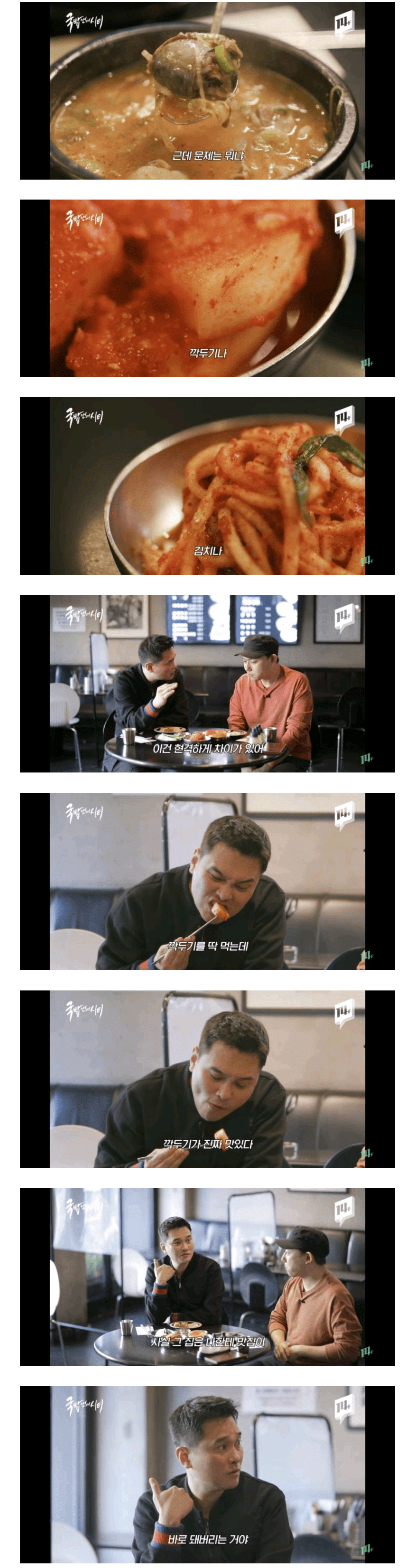 “깍두기나 김치의 맛이 훌륭하다면, 그 국밥집은 저에게 엄청난 맛집이 돼버리는 겁니다.”라며 자신의 심정을 밝혔다.
