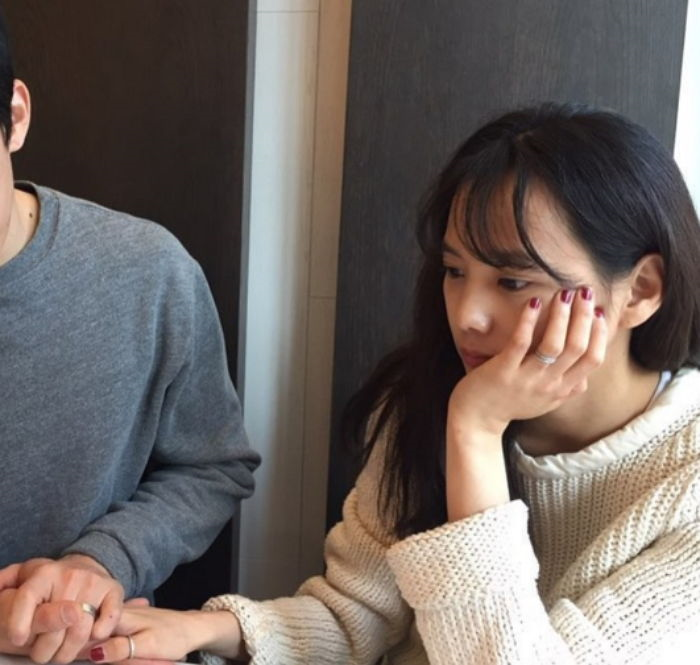지난 15일 윤승아는 인스타그램에 화장기 없는 얼굴로 김무열과 함께 찍은 사진을 게시했다.