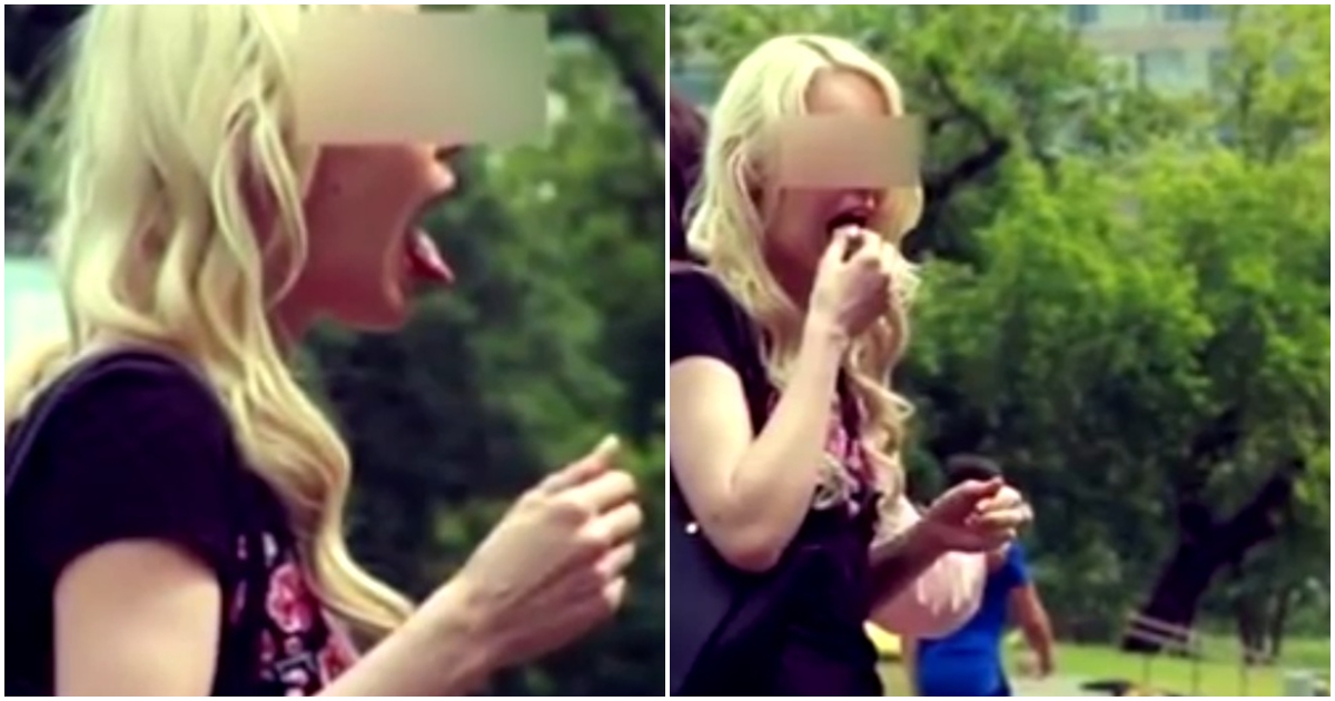 그리샤 마무린은 한 여성에게 접근해 돈을 보여주며 “이 돈을 껌처럼 씹고 삼키면, 먹은 액수 만큼 돈을 주겠다”
