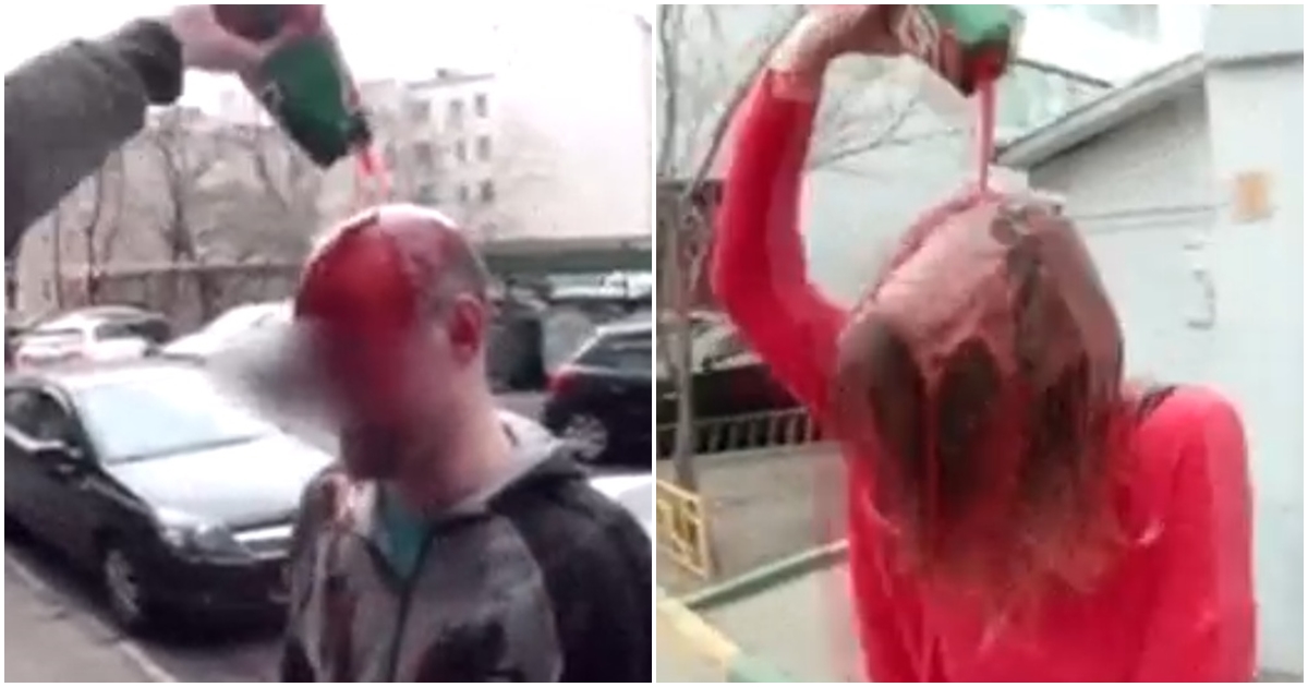 마찬가지로 그는 토마토 주스를 머리에 부으면 돈을 주겠다고 했고 사람들은 돈에 만족하며 그의 요구를 받아들였다.