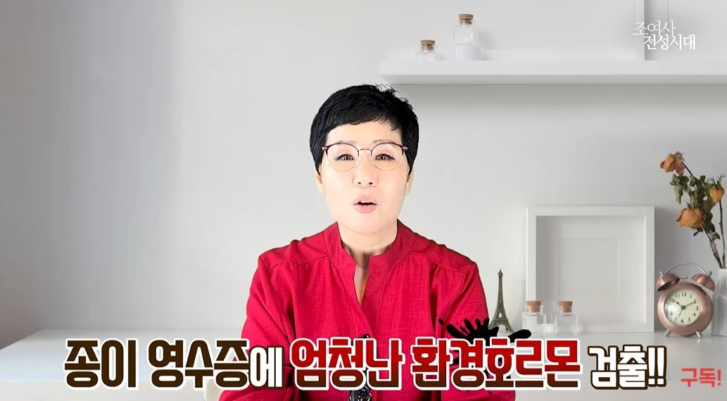 조여사는 “종이 영수증은 위험하다”라며 “종이 영수증은 화학 물질로 코팅된 종이에 열을 가해 글을 새기는 방식인 ‘감열지’ 방식을 사용하기 때문”이라며 설명을 했다.