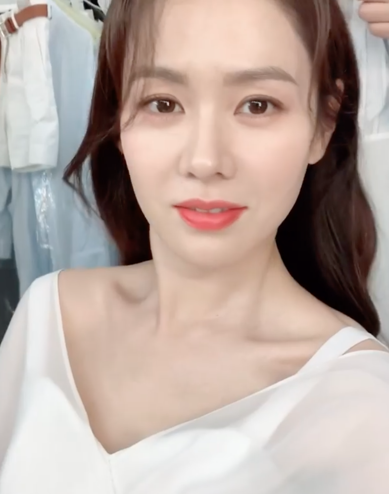 영상 속 손예진은 하얀 드레스를 입고 카메라 앞에 있다.