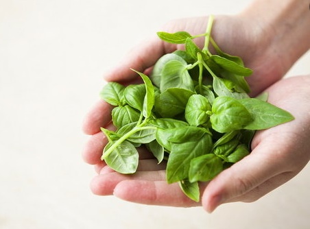 생으로 샐러드에 넣어서 먹을 정도이며, 특히 토마토와 잘 어울리기 때문에 인살라타 카프레제 같은 샐러드나 스파게티 같은 파스타를 비롯한 각종 요리에 들어가는 토마토 소스에 주로 첨가하는데, 열을 가하면 향이 약해지기 때문에 일반적인 향신료들보다는 많이 넣어주어야 한다.