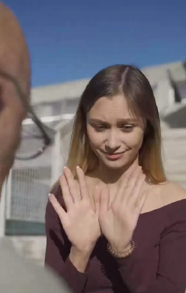 여성이 화를 내며 스마트폰을 빼앗자 남성은 듀얼스크린 기능을 활용해 불법촬영이 아니라 셀카를 찍은 것처럼 속여 상황을 모면했다.