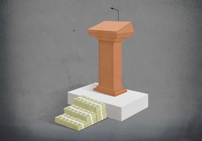 그는 주로 사회를 풍자하는 일러스트를 작업했다. 현대 사회의 부조리나 허영심 등과 같은 부분을 날카롭게 꼬집어내 감탄을 자아낸다.