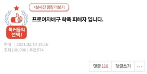 지난 14일 한 온라인 커뮤니티에 ‘프로여자배구 학폭 피해자입니다’라는 글이 올라왔다.