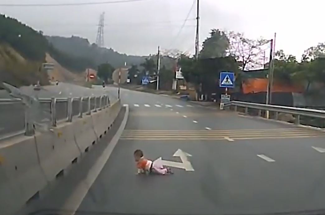 고속도로에서 기어다니는 ‘그것’의 정체는 바로 ‘아기’였다.