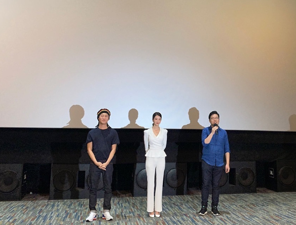 영화 시사회에서 감독과 다른 배우와 함께 서 있는 서예지는, 화이트 투피스 정장을 입어 깔끔한 모습을 선보였다.