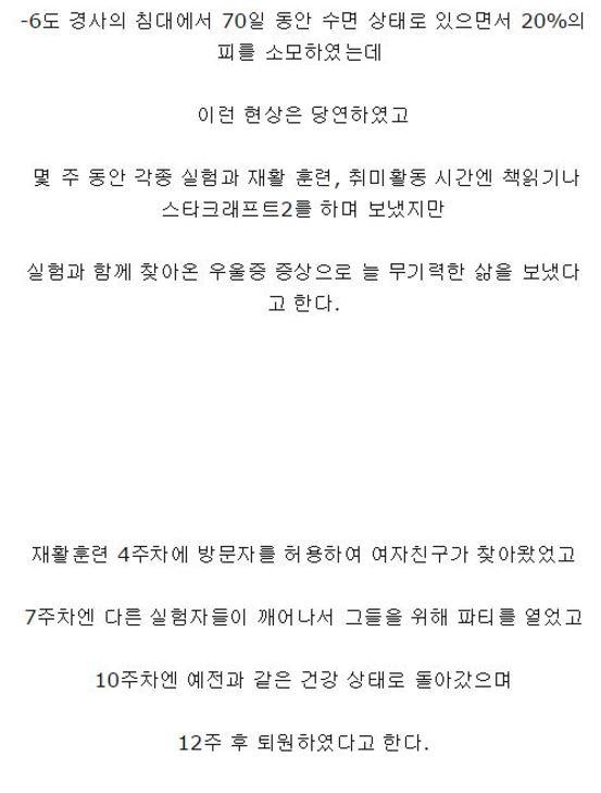 70일간 수면 실험이 이루어지기 전부터 많은 검사한다.