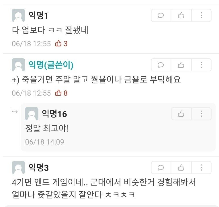 또 “솔직히 저도 기분 엄청 좋을 것 같은데요. 괴롭힌 사람이 아픈 거 만큼 행복한 게 어딨어요.”라는 반응도 보였다.