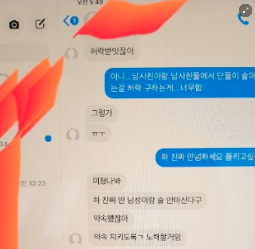 또 다른 사진 속 대화 내용에는 술을 마신다거나 콘돔을 사는 등의 내용도 담겨있다.
