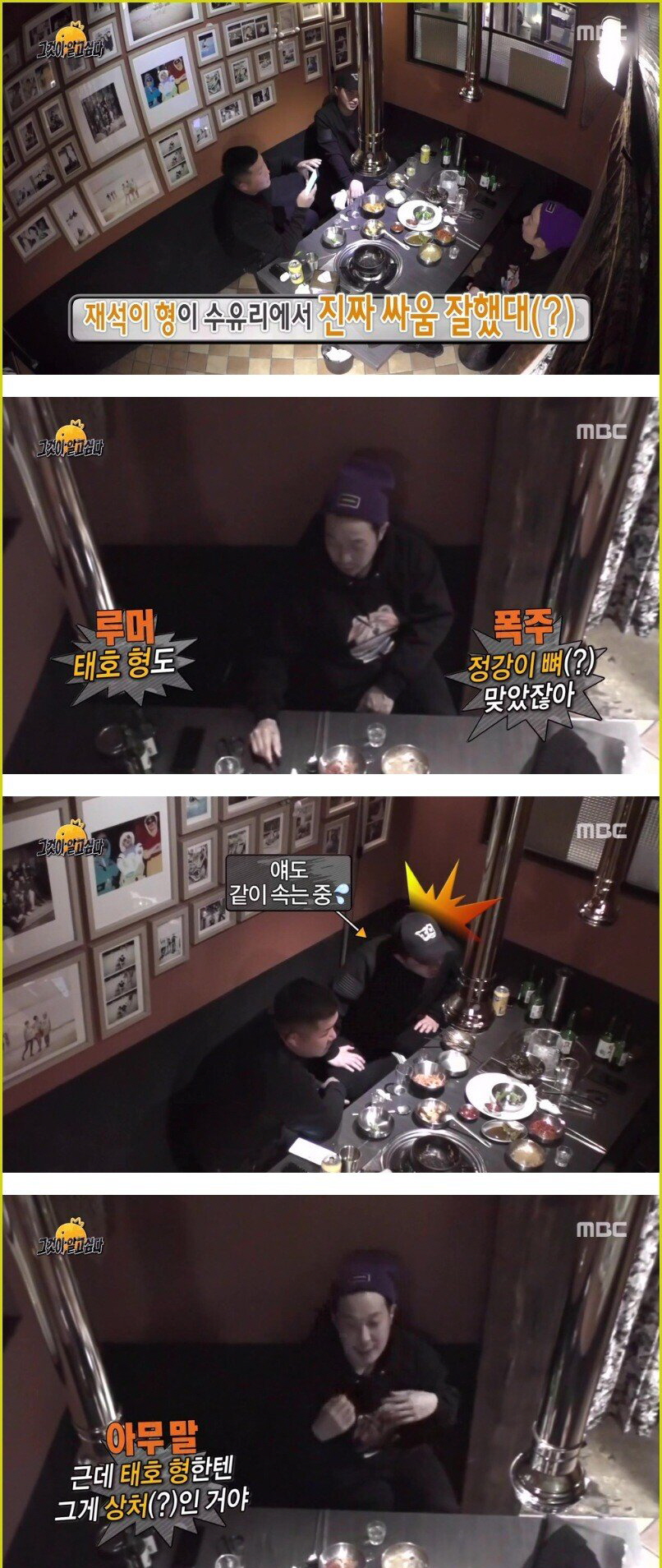 이어서 방송인 하하는 “그때 방송 PD 김태호 형도 정강이뼈 맞았다.”라고 당시 상황을 전했다.