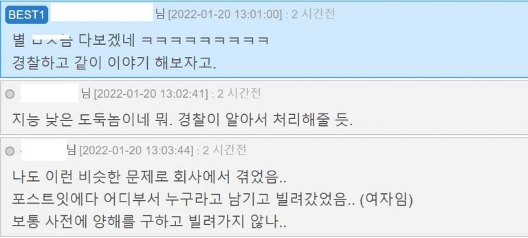 이를 본 누리꾼들은 “별 미XX 다 보겠네”, “지능 낮은 도둑놈이네 뭐. 경찰이 알아서 처리해줄 듯” 등의 다양한 반응을 나타냈다.