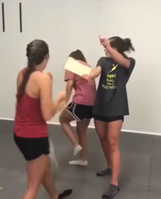공개된 영상 속에는 송판 격파를 시도하려는 여성과 송판을 잡고 서있는 친구들이 웃고 있는 모습이 담겨있다.