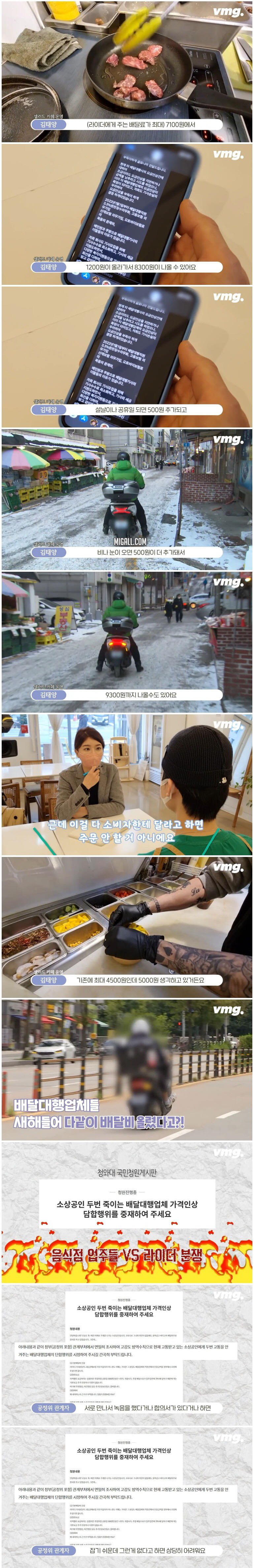 이에 요식업을 하는 A 씨는 “배달업체에게 지불하는 비용이 엄청 늘었다.”, “공휴일이거나, 비나 눈이 오면 배달비가 또 늘어난다.”라며 설명했다.