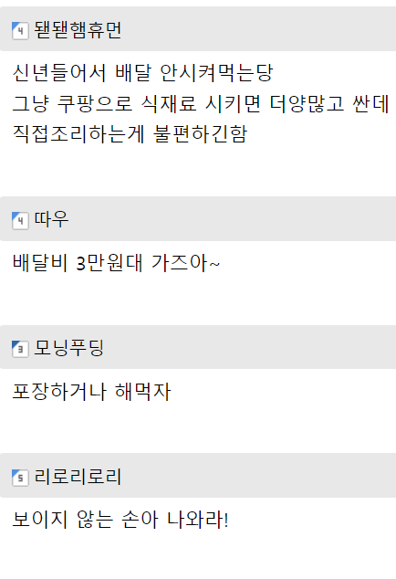 이를 본 온라인 커뮤니티 네티즌들은 “배달비가 너무 비싸서 요즘은 포장해서 먹는 편이에요.”라는 반응을 보였다.