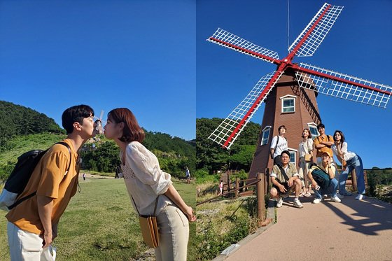 풍차를 가운데 두고 소이현-인교진 부부가 귀여운 포즈를 선보이고 있었다.