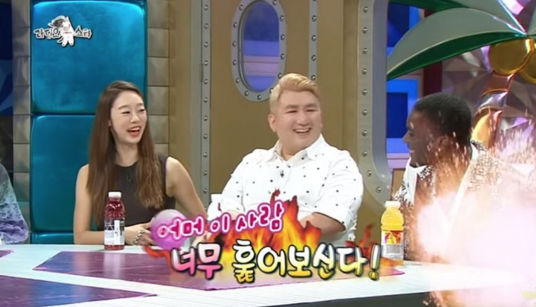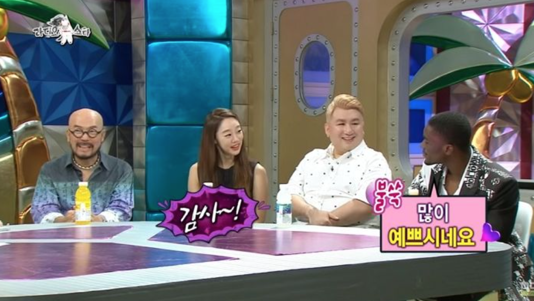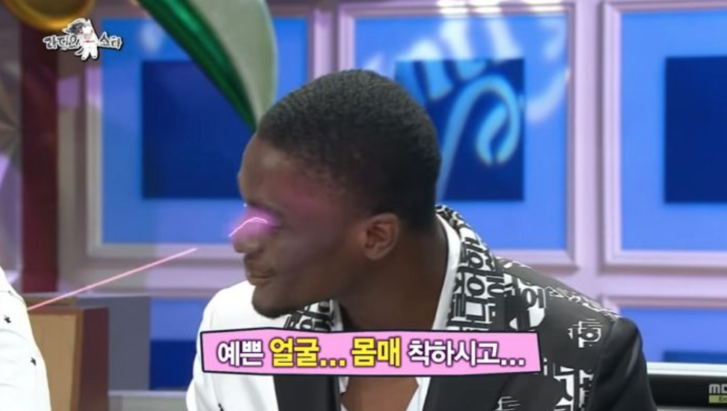 이 모습을 지켜보던 MC 규현이 “너무 위아래로 훑지는 말라”고 충고했지만, 샘 오취리는 “가나에서는 몸부터 본다”고 당당하게 말하며 최여진을 계속 훑어봤다.