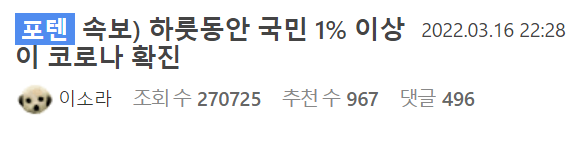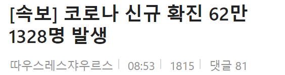 하룻동안 국민 1% 이상이 코로나 확진..”전세계 1위 찍었다” 하룻동안 국민 1% 이상이 코로나 확진 ADVERTISEMENT ADVERTISEMENT ADVERTISEMENT ADVERTISEMENT ADVERTISEMENT ADVERTISEMENT ADVERTISEMENT ADVERTISEMENT ADVERTISEMENT ADVERTISEMENT [저작권자 NEWSNACK/ 무단복사, 무단전재 및 재배포 금지 (위반 시 법적조치)]