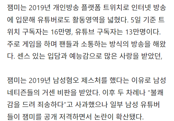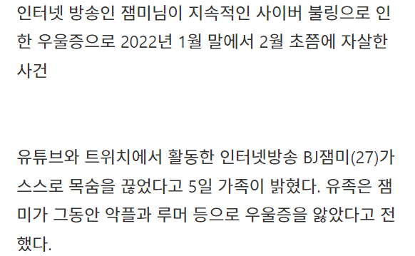 그는 “잼미라는 스트리머가 사망했다는 소식을 듣고 너무 충격이었는데 이 영상을 찍으면서도 굉장히 떨린다”며 잼미의 사망 소식을 전했다.