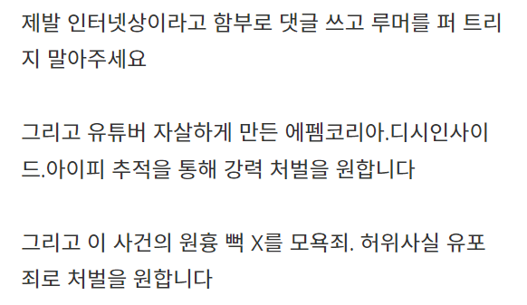 뻑가는 잼미에게 보낸 것으로 추정되는 메일에 “욕보일 생각은 없다” “사과의 말씀 올린다” “여태껏 미뤄왔는데 지금에서야 겨우 연락드린다” 등의 말을 담은 것이라 설명했다.