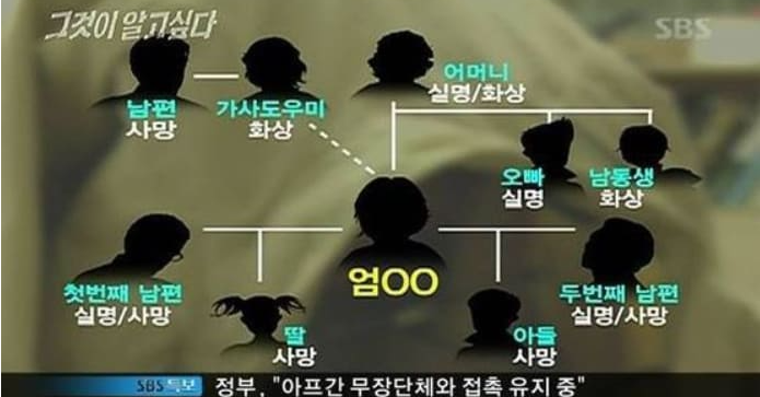 그의 첫 남편에 이어 두 번째 남편, 그리고 엄씨의 자녀들까지 사망했는데, 또 엄씨의 어머니와 친오빠는 실명에 이르기까지 했다.