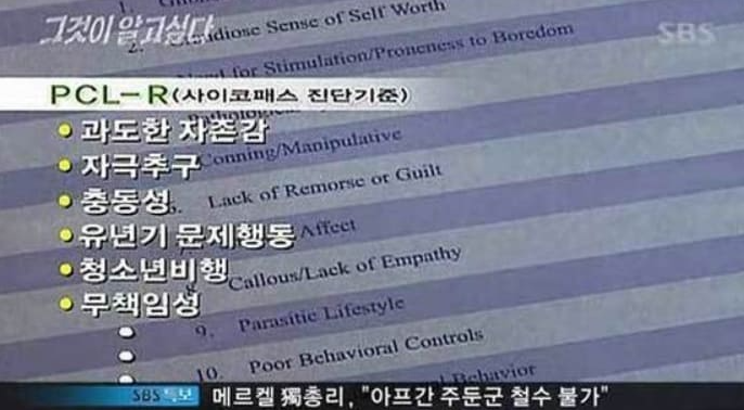 우리가 알고 있는 연쇄살인범인 유영철의 점수는 38점, 강호순은 27점이었다.