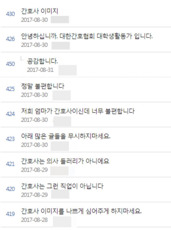 이를 접한 간호사나 간호학과 학생들은 충분한 공감을 하는 모습을 보이면서 간호사의 이미지를 망치지 말아달라고 호소했다.