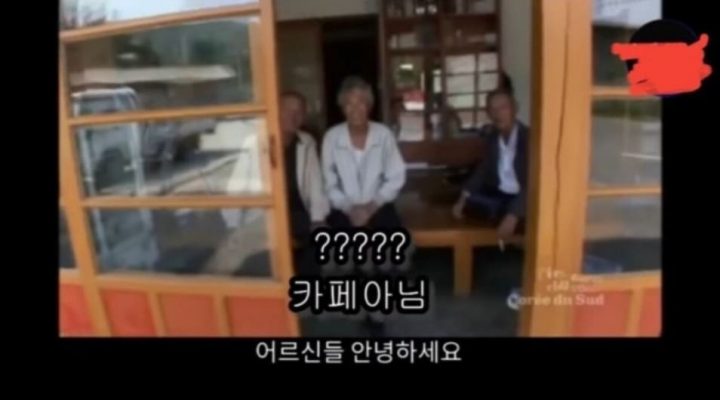 프랑스인은 시골에서 길을 헤매다 카페로 보이는 곳에 들어갔는데 알고보니 마을회관이었다.