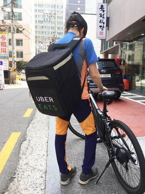 그러면서 우버이츠 배달 가방을 맨 채 자전거에 올라서 있었다.
