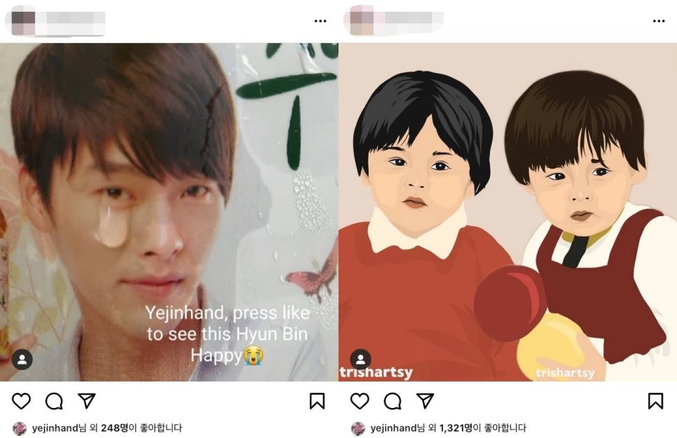 손예진은 현빈 팬들이 올린 사진 일부에 ‘좋아요’를 눌렀다. 그 게시물들은 대부분 둘의 행복을 기원하면서 게재한 현빈 사진이었고, 손예진은 별다른 코멘트를 달지는 않았으나 여러 게시물에서 ‘좋아요’를 달았다.