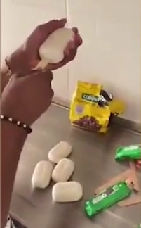 제이 토미의 영상은 비누를 초콜릿 아이스크림을 만드는 과정부터 시작한다.