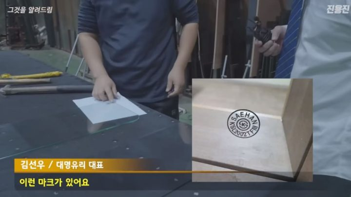 영상에서 그는 유리 전문가를 찾아가 물어보자, 전문가는 강화유리에만 있다는 마크를 보여주며 이것이 일반유리와 강화유리를 구분하는 방법이라고 말했다.