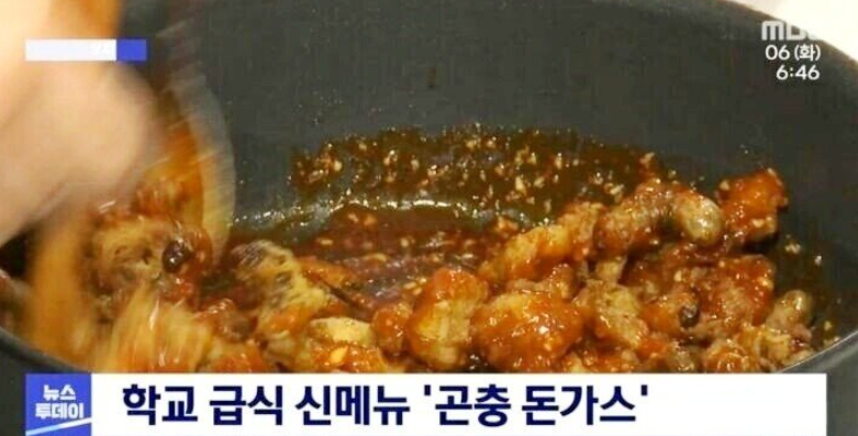 최근 식용곤충은 다양한 식품에도 활용되어 돈까스, 어묵 탕수육 등 학생들이 좋아할만한 반찬들로 재탄생시켜 학교 급식으로 내놓았다.