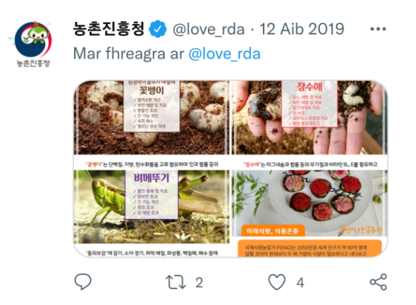 일반 식품원료로 인정된 식용곤충 ‘고소애’는 천연 항생제라고 불릴만큼 면역력 증가와 염증제거에 효과가 탁월하다고 한다.